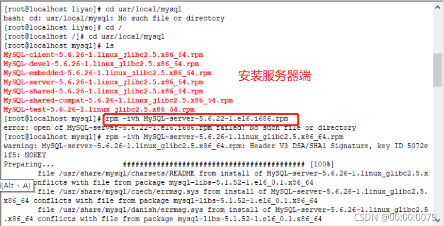 安装服务器端:rpm -ivh MySQL-server-5.6.22-1.el6.i686.rpm
