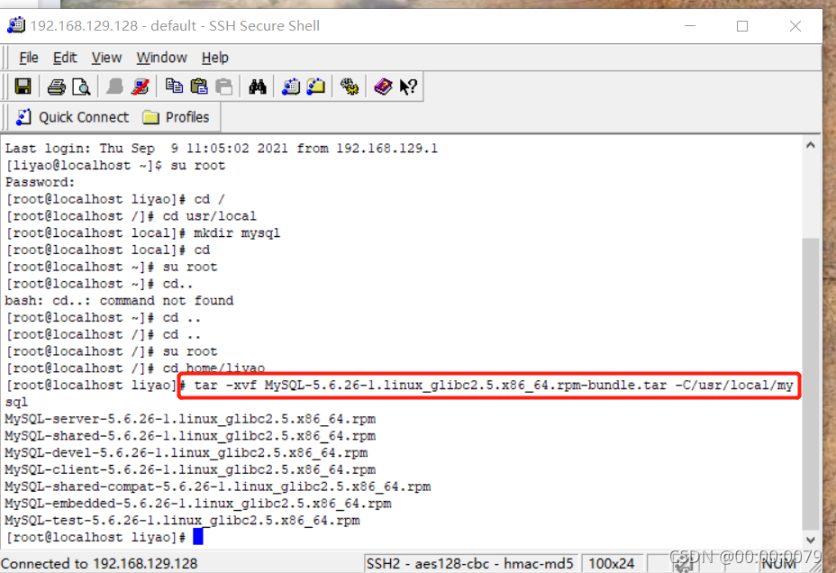 tar -xvf MySQL-5.6.22-1.el6.i686.rpm-bundle.tar -C /usr/local/mysql