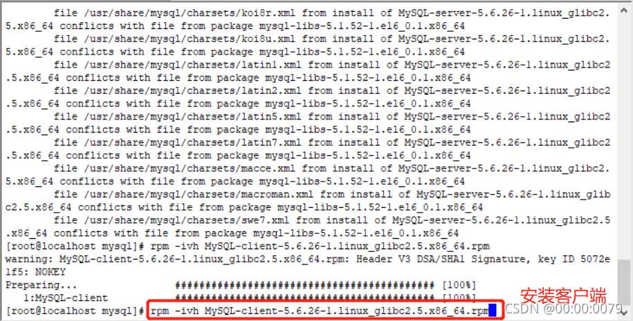 安装客户端:rpm -ivh MySQL-client-5.6.22-1.el6.i686.rpm