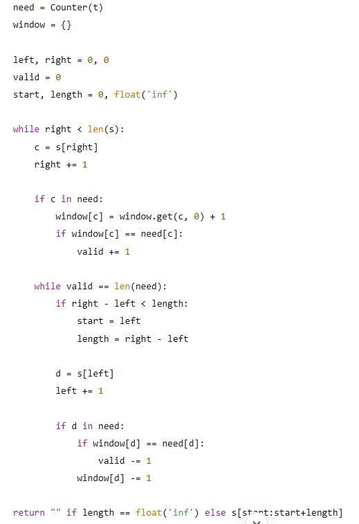 此解法使用滑动窗口技巧,时间复杂度O(n),空间复杂度O(k),其中k为字符集大小。