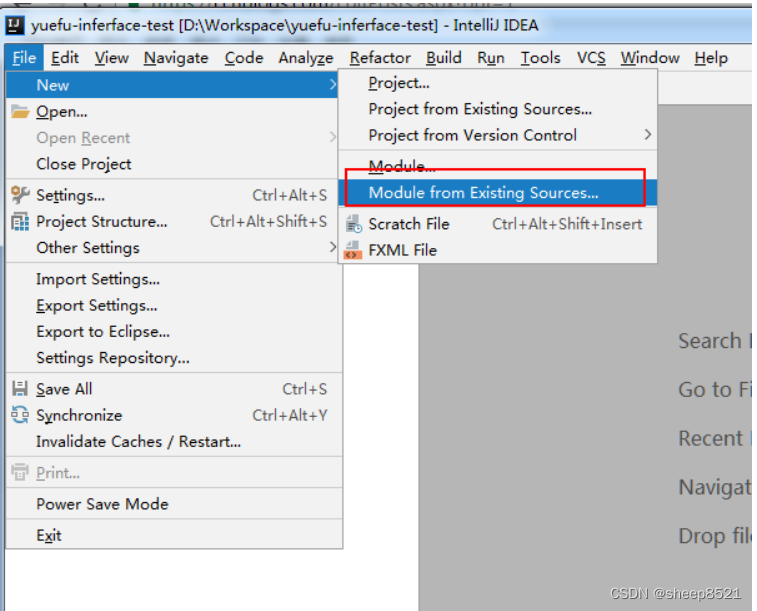 7、点击new 从本地选择一个子模块进行展示,后续点击next,直到出现子模块的snapshot,再继续点击next,就显示新导入的maven子项目了。