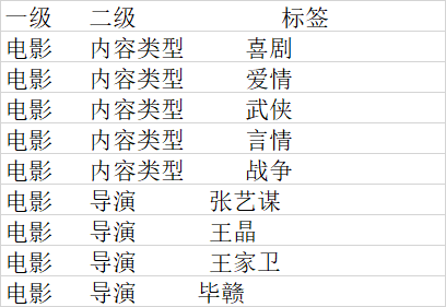 select '电影' as con_class_1_name,'导演' as con_class_2_name,'张艺谋' as tag_class_1