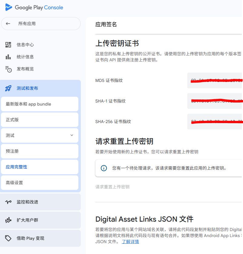 只要你的应用还在 封闭测试阶段,并启用了App Signing,就可以通过控制台申请重置上传密钥。