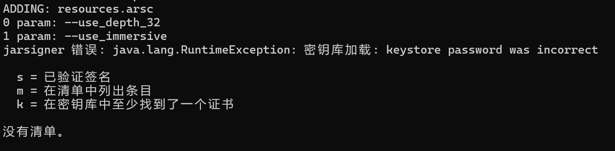 这些信息可能会在关键点暴露出实际的打包问题,尤其是签名错误是极其常见的原因。