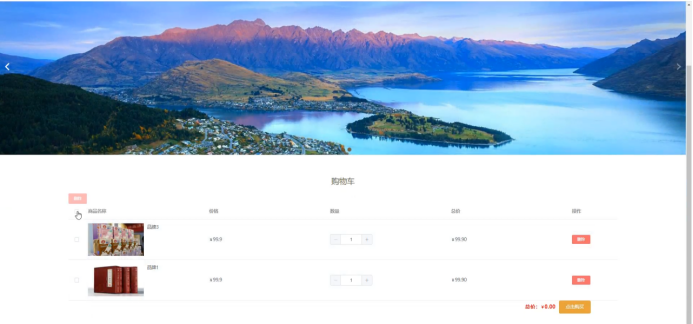 购物车:购物车模块在Vue前端允许用户选择并添加商品到他们的购物车。这些信息通过HTTP请求发送到Java后端,后端处理这些请求并在MySQL数据库中更新用户的购物车内容。用户可以查看、修改购物车中的商品数量或移除商品。最后,在结账时,用户提交订单,后端验证支付信息并处理订单,同时更新数据库中的库存状态。这个过程实现了一个从选择商品到完成购买的完整交易流程。购物车页面如图5-5所示: