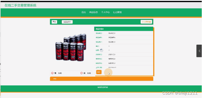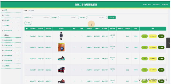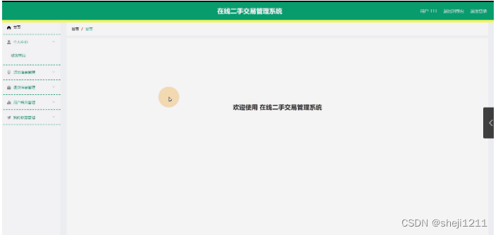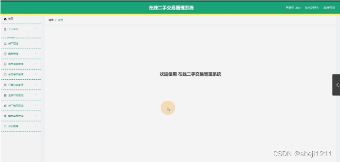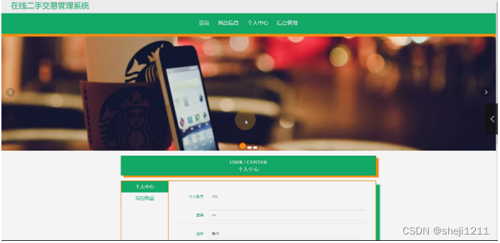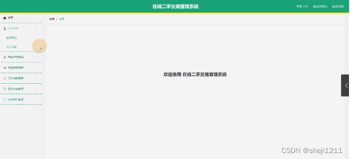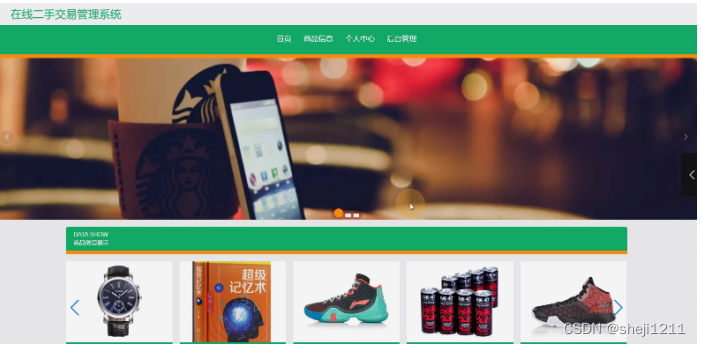 用户通过输入账号、密码进行登录进入在线二手交易管理系统可查看首页、商品信息、个人中心、后台管理等内容,如图5-8所示。