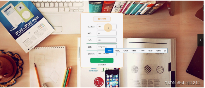 用户注册,用户通过输入个人账号、密码、姓名、邮箱、手机号码等内容进行注册,如图5-7所示。