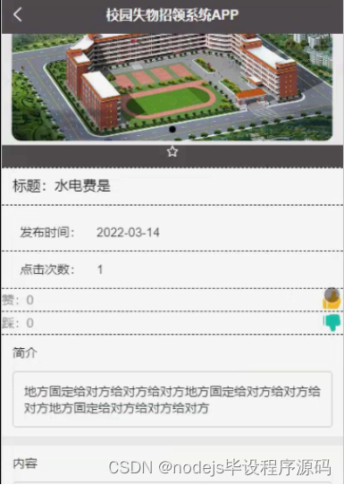 校园信息,在校园信息页面可以查看标题、图片、发布时间、内容等信息,并根据需要进行收藏操作,如图4-4所示。