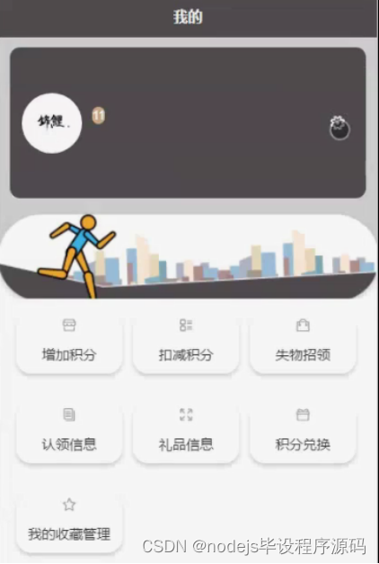学生,在我的页面可以对增加积分、扣减积分、失物招领、认领信息、礼品信息、积分兑换、我的收藏管理等详细信息进行操作,如图5-7所示。