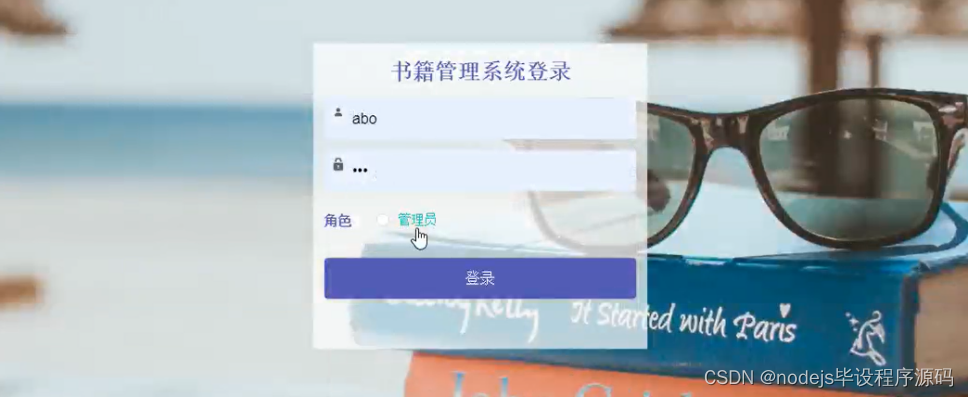 管理员进行登录,进入系统前在登录页面根据要求填写用户名和密码,选择角色等信息,点击登录进行登录操作,如图5-5所示。
