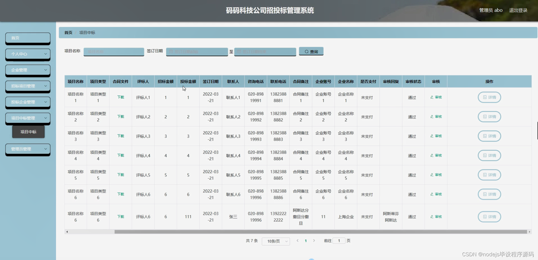 - 项目中标管理模块:实现中标结果的公示、通知和合同管理功能,确保中标过程的透明度和公正性。