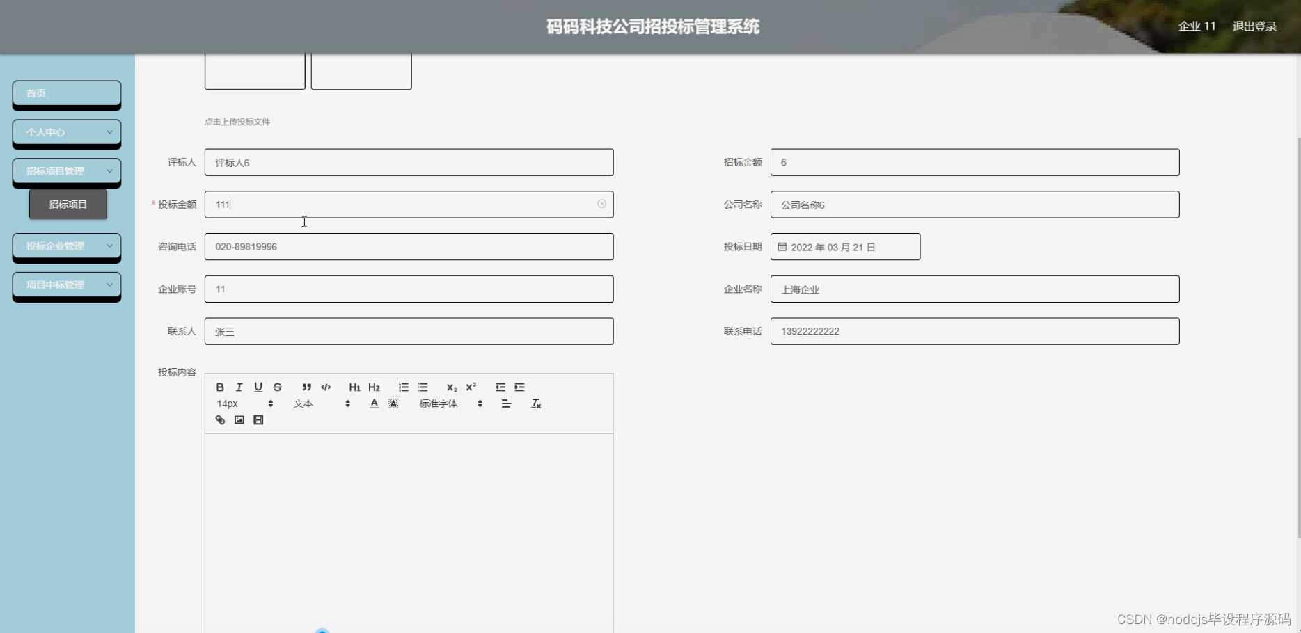 - 投标企业管理模块:对参与投标的企业进行管理和评估,包括企业资格预审、投标文件提交、投标保证金管理等环节。