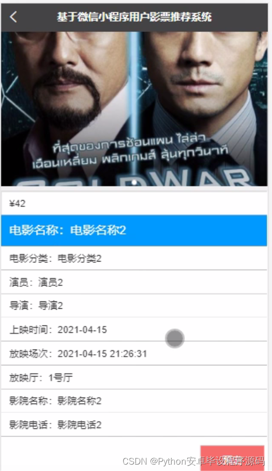 [附源码]计算机毕业设计Python+uniapp基于微信小程序用户影票推荐系统x4605(程序+lw+远程部署)