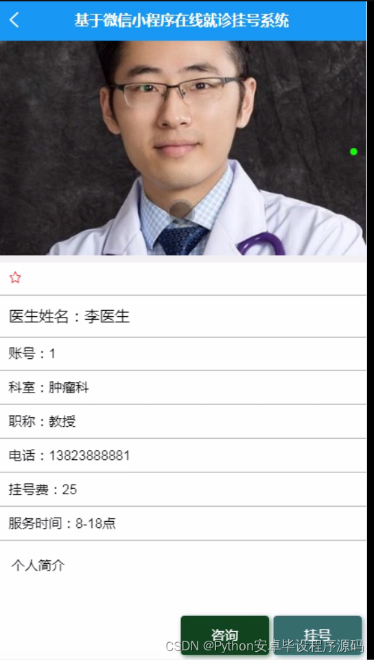 [附源码]计算机毕业设计Python+uniapp基于微信小程序在线就诊挂号系统92puf(程序+lw+远程部署)