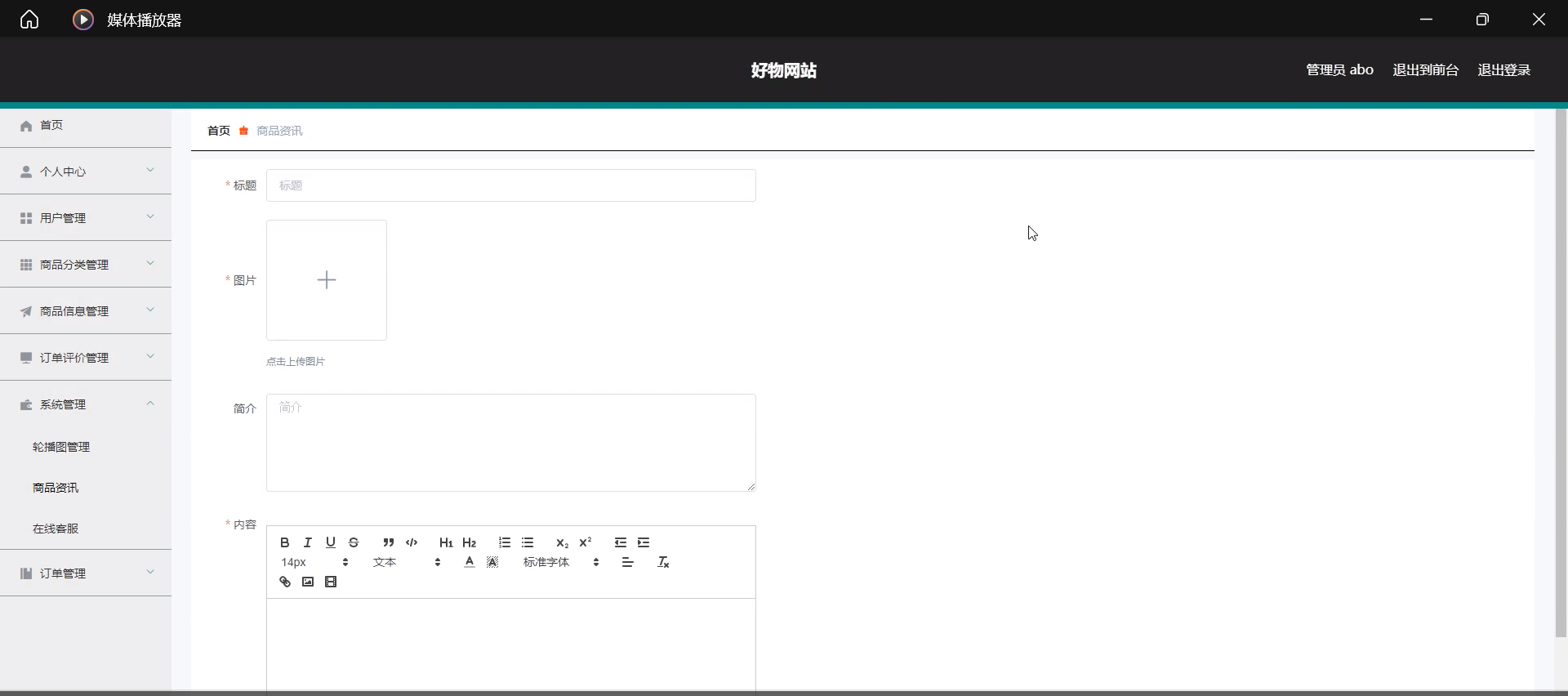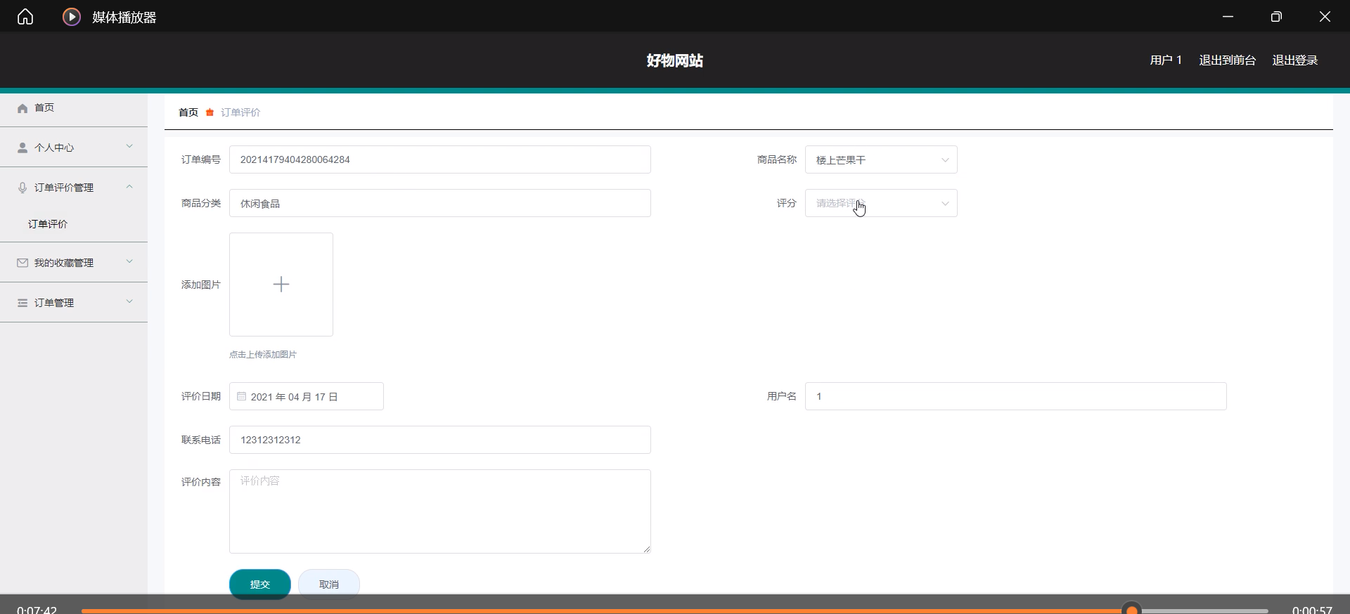 系统围绕“用户、商品分类、商品信息、订单评价”四大核心模块展开。