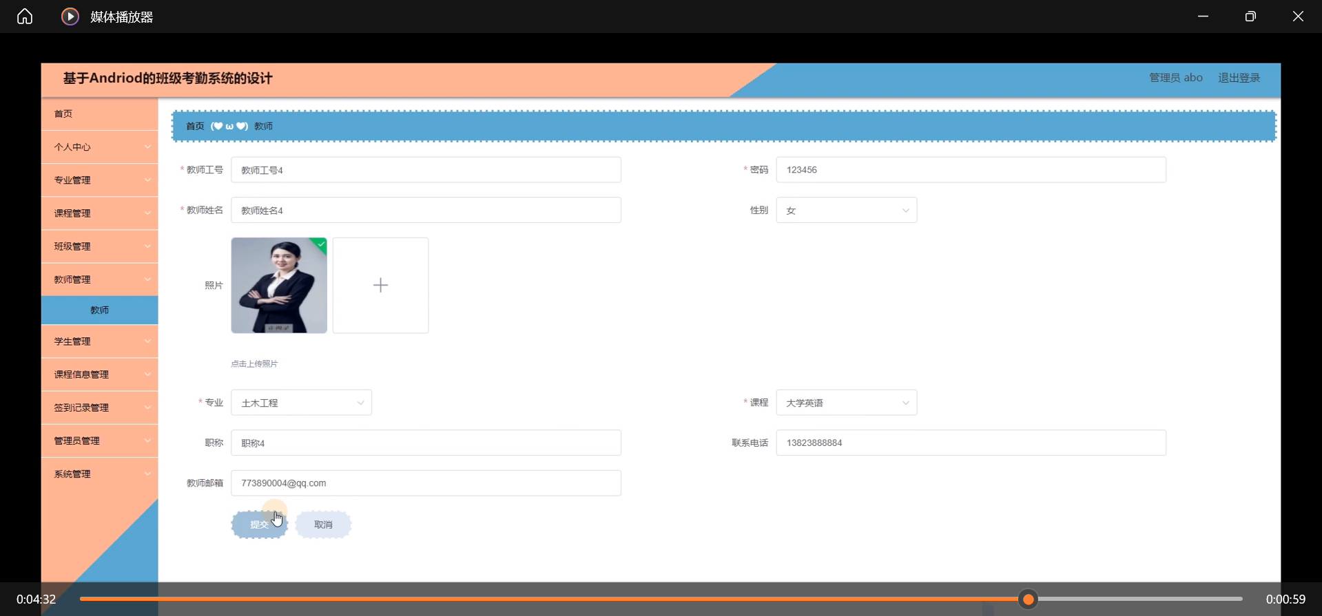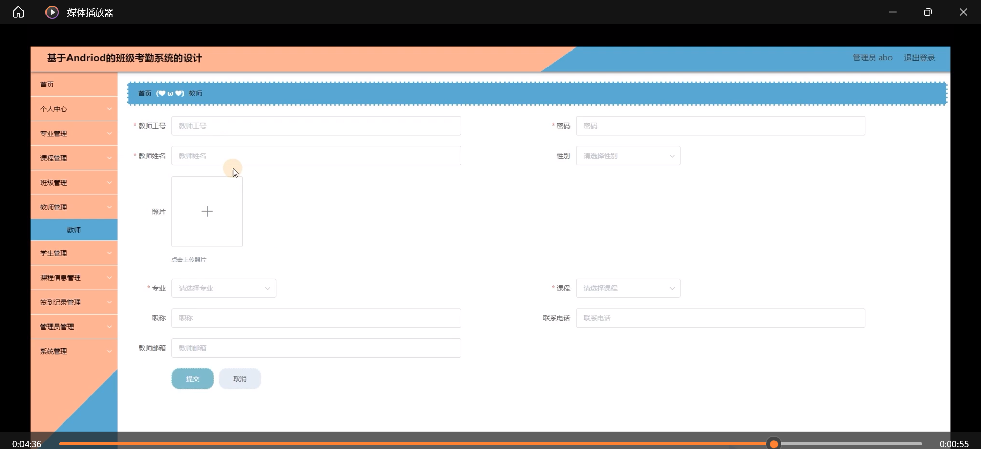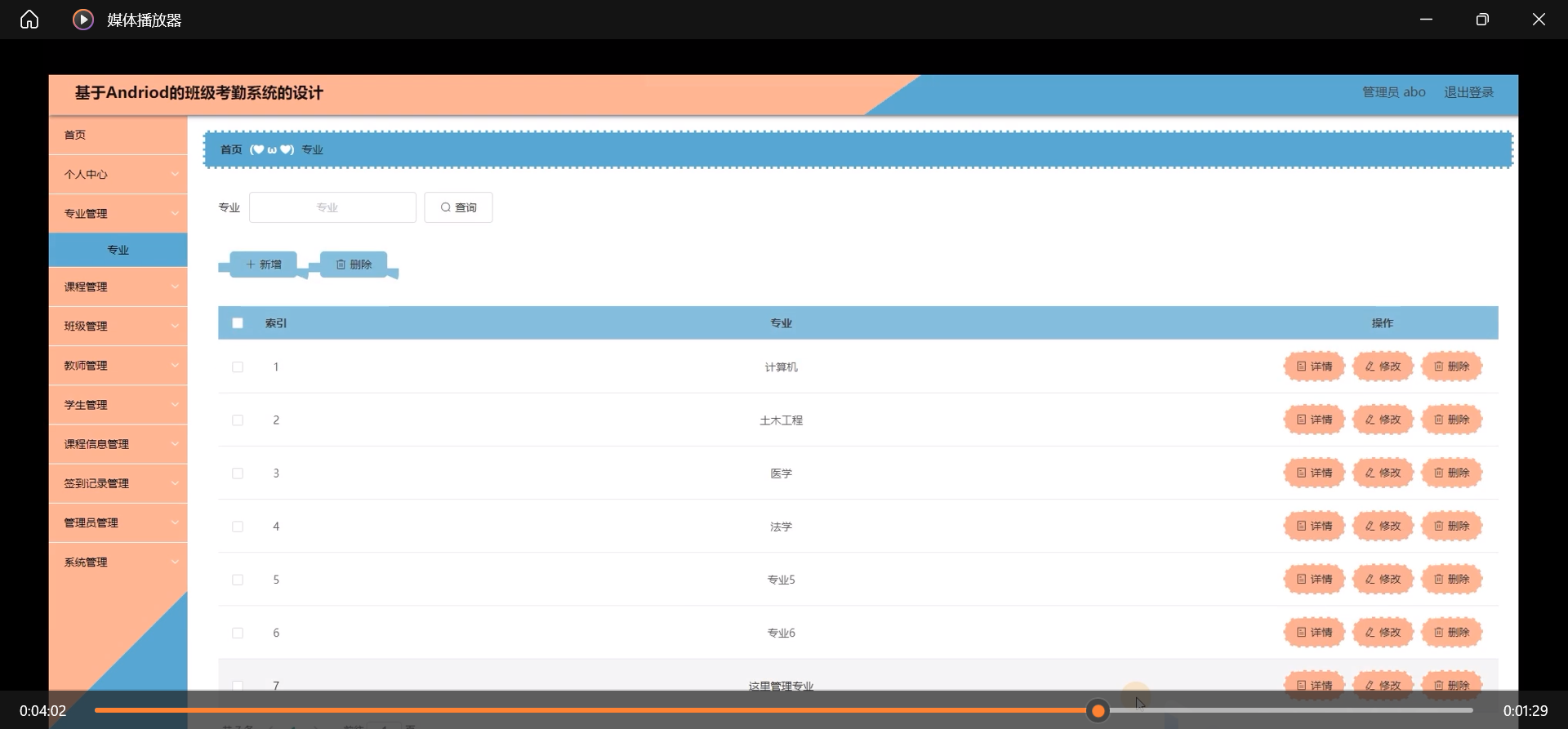 系统围绕“专业-课程-教师-学生-班级-签到记录”六大核心实体构建,功能划分为: