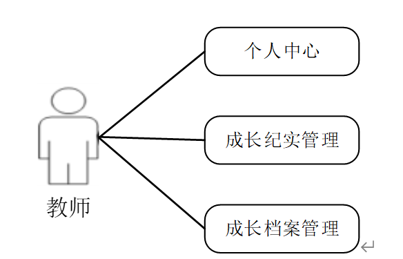 (2)、教师关键功能包含个人中心、成长纪实管理、成长档案管理等进行管理。教师用例如下: