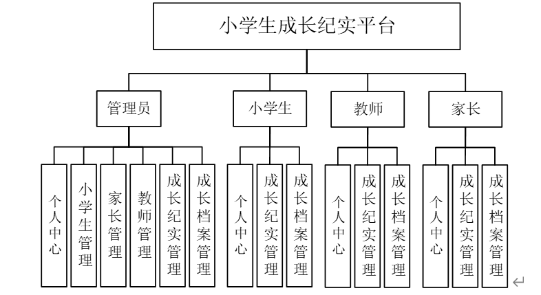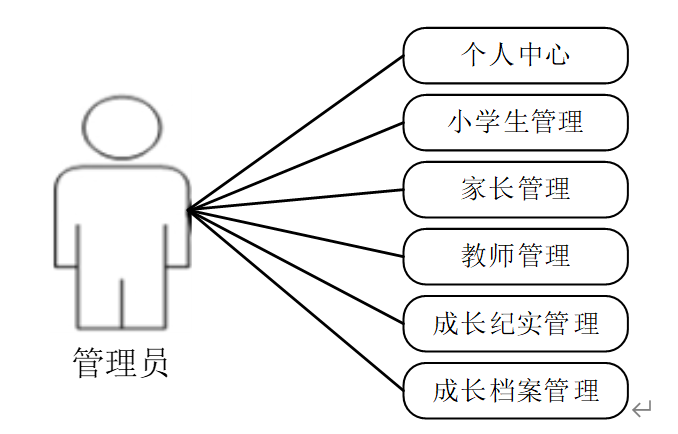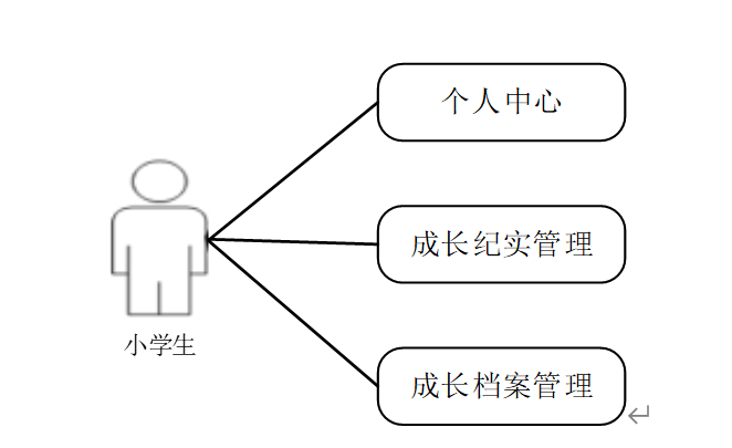 (3)、小学生关键功能包含个人中心、成长纪实管理、成长档案管理等进行管理。用户用例如下:
