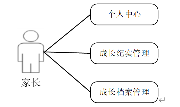 (4)、家长关键功能包含个人中心、成长纪实管理、成长档案管理等进行管理。用户用例如下: