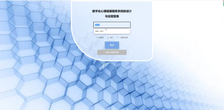 在当今快节奏的生活中,心理健康问题日益受到关注。随着社会压力的增加,人们越来越意识到心理健康的重要性,同时也对心理健康服务的便捷性和高效性提出了更高的要求。数字化技术的发展为心理健康服务提供了新的解决方案,通过构建一个高效、安全且易于使用的心理健康服务平台,可以更好地满足人们的需求。基于此,我们设计并实现了一个基于Java技术的数字化心理健康服务系统,旨在通过现代信息技术提升心理健康服务的效率和质量。