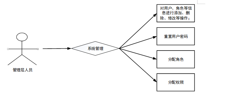 本系统的系统管理用例需求如图3-1所示。系统管理可细化为若干个更低级的功能,每个功能均可进行不同的操作。