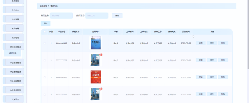 课程信息管理:管理员和教师可对课程信息进行查询、新增、修改和删除操作。