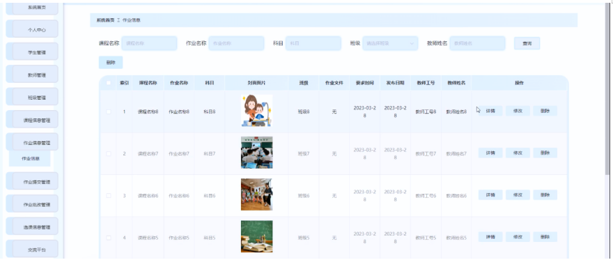 点击作业信息管理,管理员可以查看已有的完成作业信息,并进行查询、修改或删除的操作,如图5-12所示。