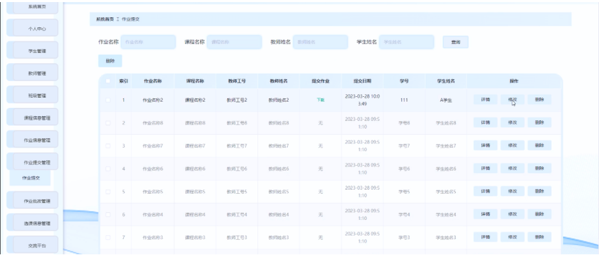 作业提交管理:学生提交作业后,教师可查看并管理作业提交记录。
