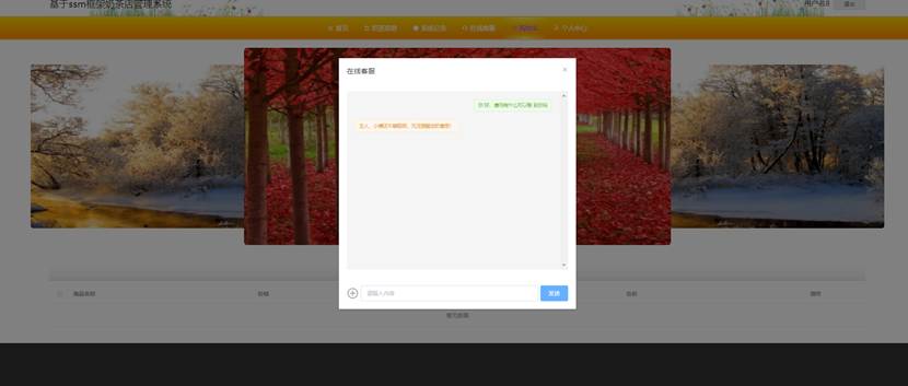 点击在线客服,用户可以输入内容进行咨询,管理员可以在后台进行查看并回复,达到用户和管理员交流的效果;如图5-5所示:
