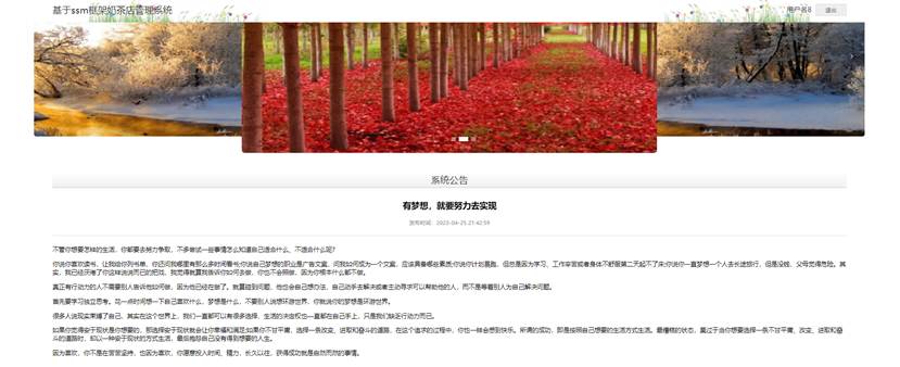 在消费升级背景下,传统奶茶店管理依赖人工记录库存、手动统计订单的模式逐渐难以满足需求 —— 商品分类混乱、订单跟踪低效、用户互动不足,既影响店铺运营效率,也降低消费者购物体验。基于此,开发一套基于 SSM 框架的奶茶店管理系统,整合商品管理、订单跟踪、在线客服等功能,打造高效、便捷的奶茶店运营与交易平台,成为提升奶茶店竞争力的重要方向。