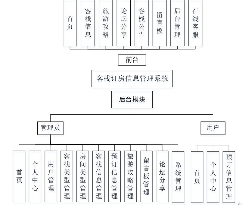 对本系统进行全面的系统功能的分析,可以得出客栈订房信息管理系统的功能模块图,如图4-1所示。