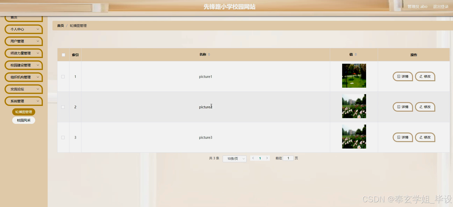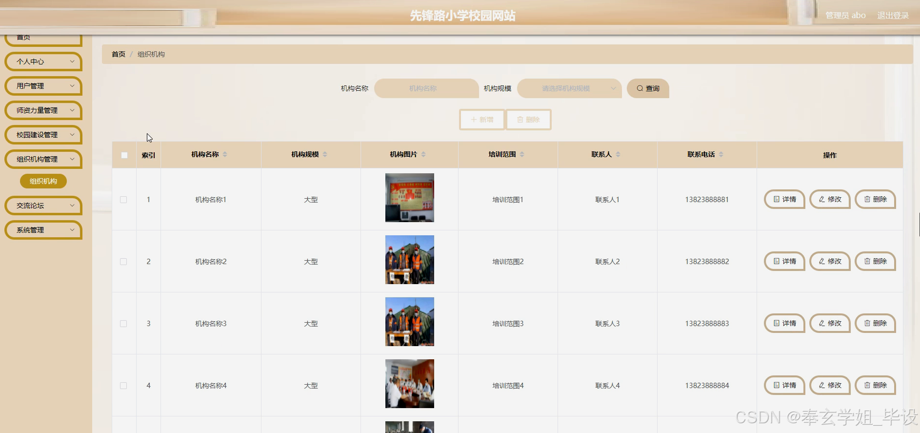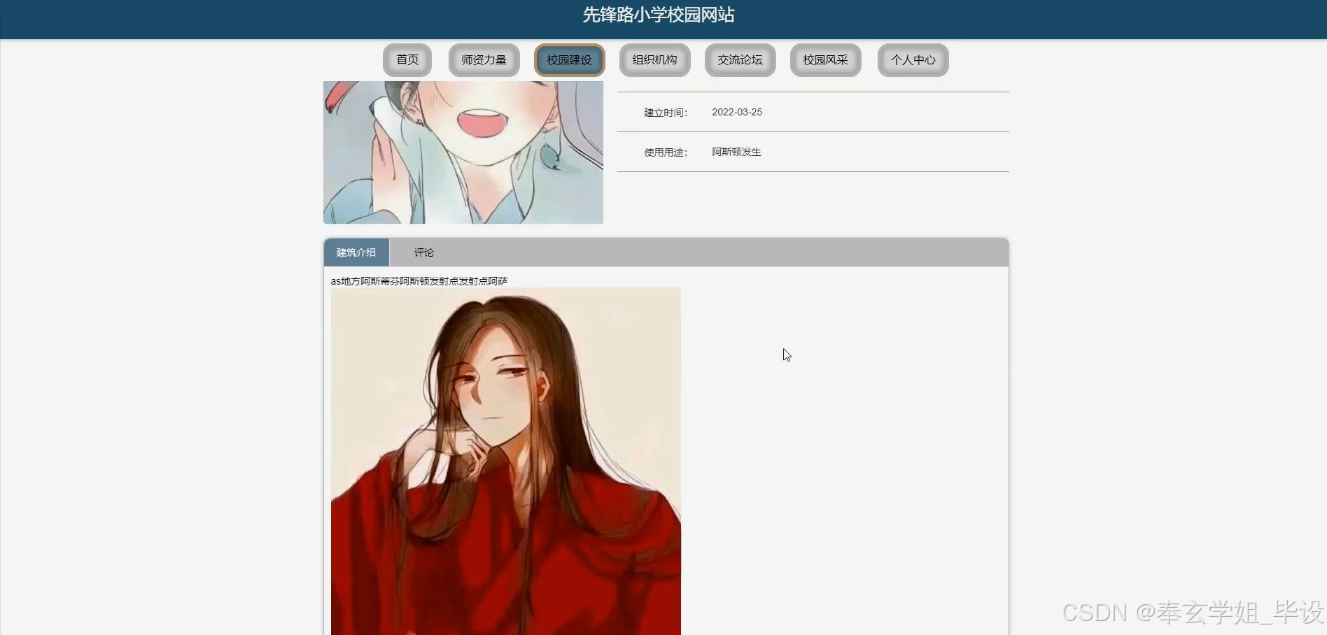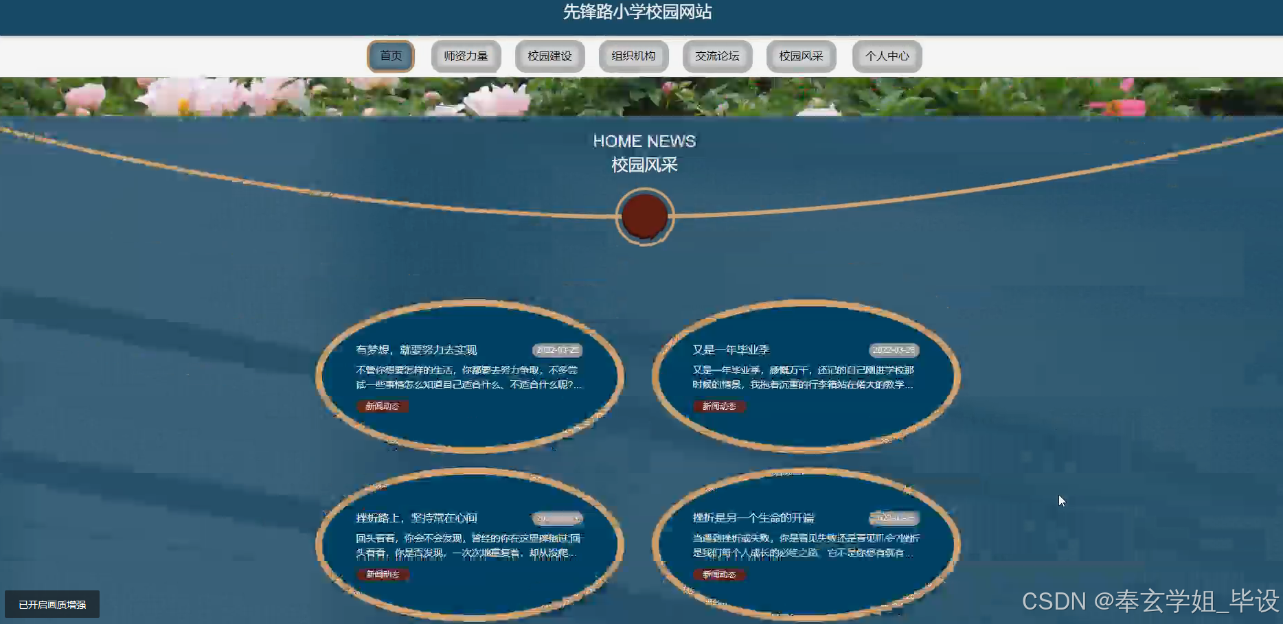 本项目的核心目的在于设计并实施一个符合先锋路小学实际需求、功能全面的校园网站,旨在通过网站平台实现信息的快速传递与共享,优化学校管理流程,提升教育教学效率。通过整合用户管理、师资力量展示、校园建设成果分享、组织机构介绍等系统功能,打造一个互动性强、用户体验良好的在线环境,进一步推动学校的教育信息化建设,增强学校的综合竞争力。