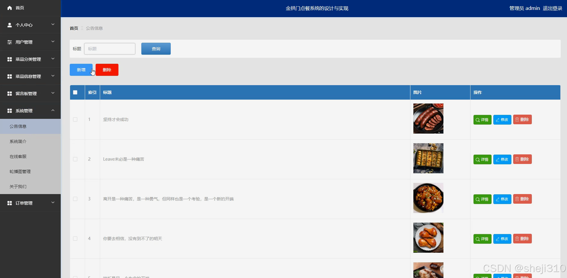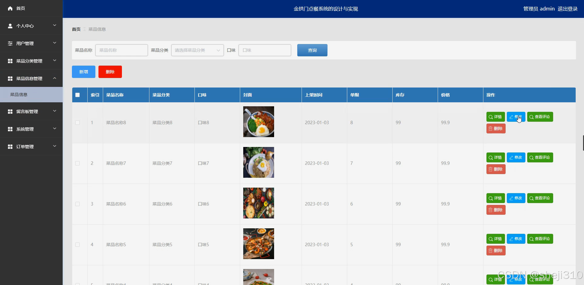 菜品信息模块:详细记录每道菜品的名称、价格、口味、营养成分等信息,并提供高清图片展示。顾客可通过该模块全面了解菜品信息,做出更加合理的点餐选择。