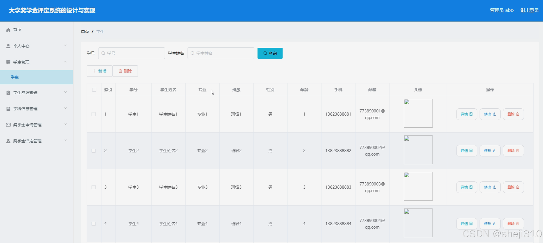 在高等教育日益普及的今天,奖学金作为激励学生努力学习、全面发展的重要手段,其评定过程的公正性、透明性和效率性显得尤为重要。然而,传统的手工评定方式不仅耗时费力,还容易受到人为因素的影响,导致评定结果可能存在偏差。随着信息技术的飞速发展,开发一套自动化、智能化的大学奖学金评定系统成为解决这一问题的关键。该系统能够整合学生信息、学科成绩、学院及班级管理等多方面数据,实现奖学金评定的自动化处理,为高校管理提供有力支持。