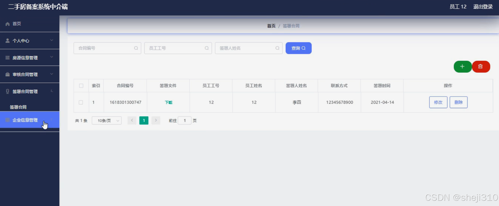 本研究的意义在于,首先,通过开发二手房备案系统中介端,能够有效整合并管理中介机构的各项资源,包括员工信息、房源数据、合同文档等,实现信息的集中化、规范化管理,减少人为错误,提高管理效率。其次,系统提供的合同审核与签署功能,能够确保交易流程的透明性和合法性,保护买卖双方的权益,增强市场信任。再者,系统的运用还能促进中介行业的数字化转型,提升行业整体服务水平,推动房地产市场的智能化发展。最后,对于中介机构而言,该系统是提升竞争力、拓展市场的重要工具,有助于在激烈的市场竞争中脱颖而出。