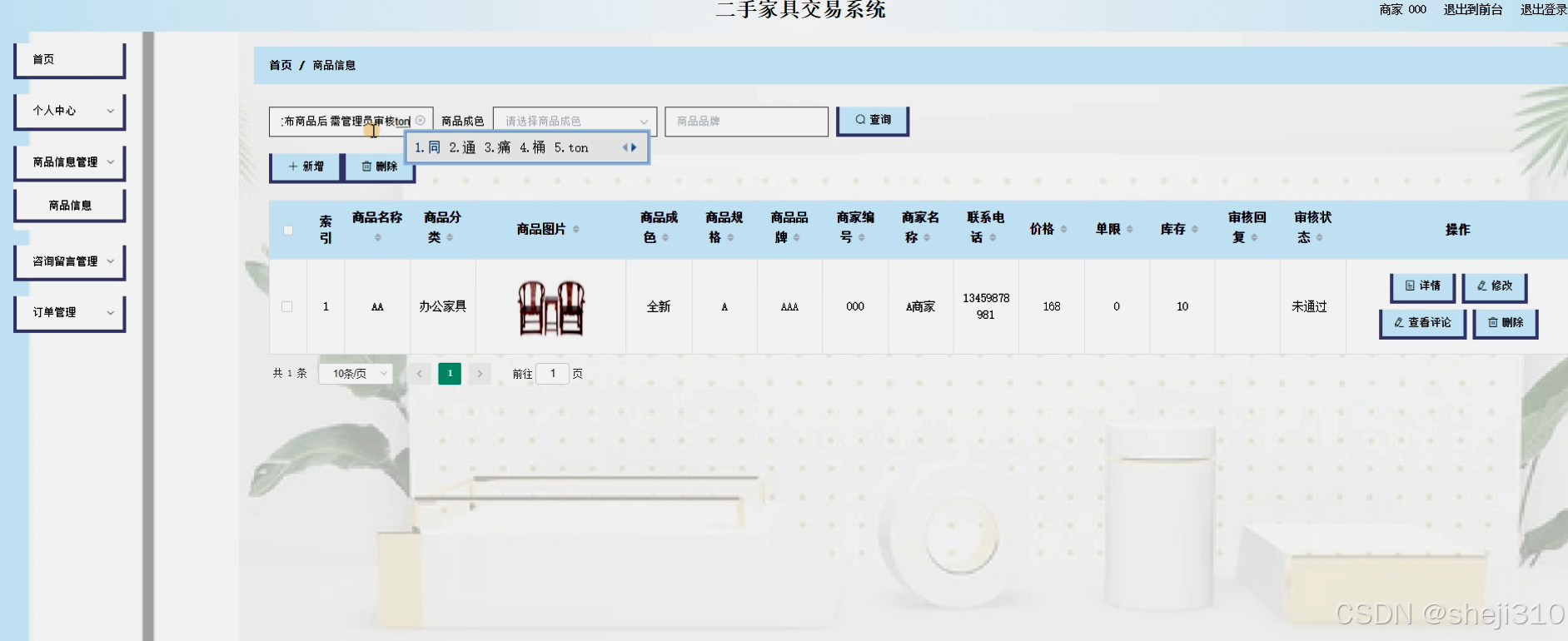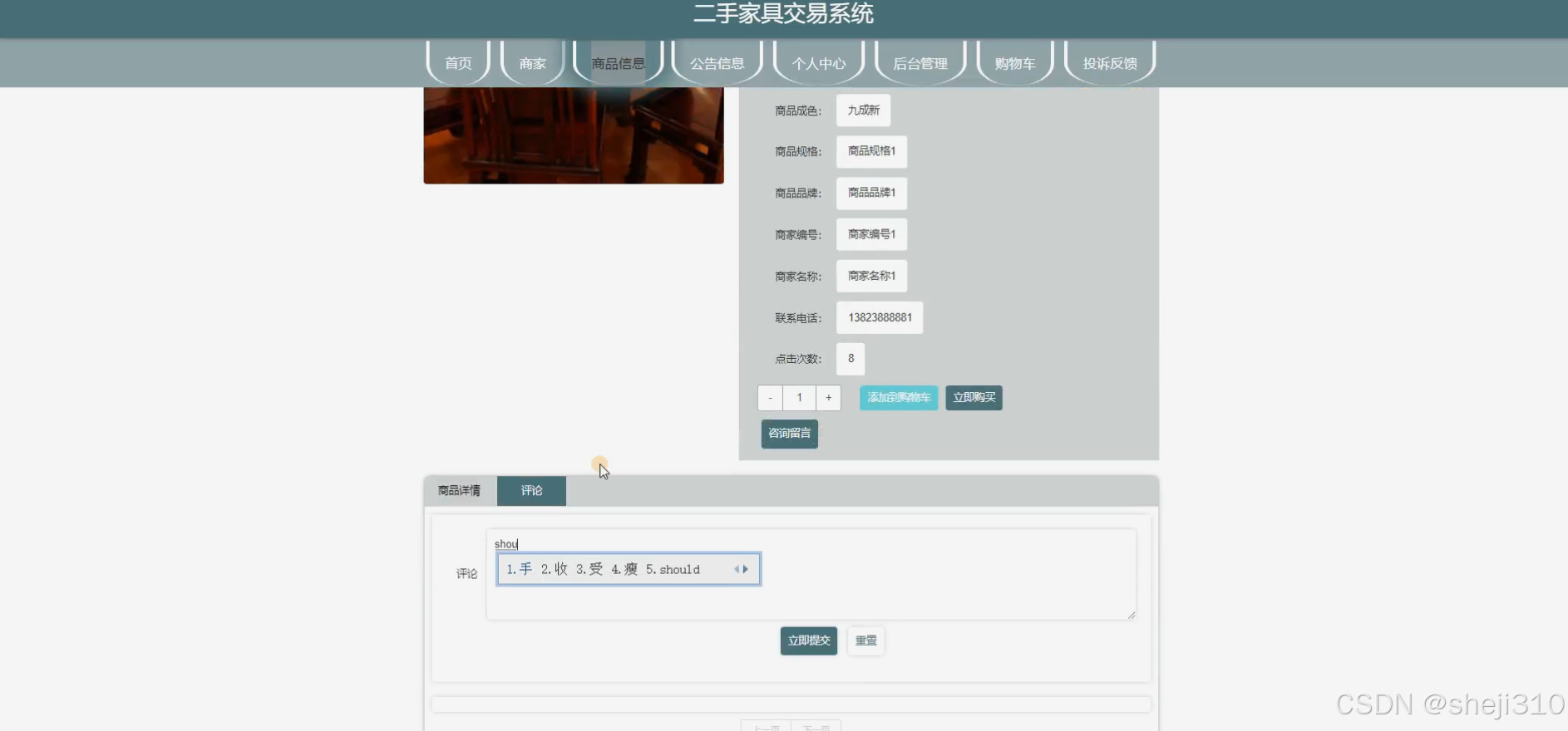 - 商品信息管理:允许商家发布、编辑、下架商品信息,包括图片、价格、描述、状态等,确保商品信息的准确性和时效性。