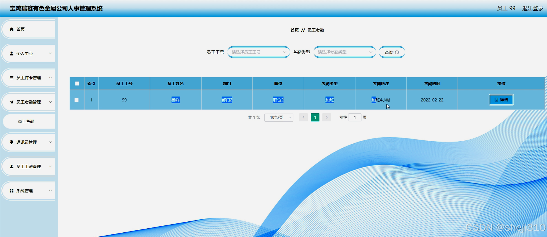 随着企业规模的日益扩大,宝鸡瑞鑫有色金属公司在人力资源管理上面临着前所未有的挑战。传统的手工或简单的电子化人事管理方式已难以满足公司对于员工信息管理、考勤统计、薪资核算等方面的需求。特别是在当前信息化高速发展的时代背景下,构建一套高效、准确、易于维护的人事管理系统显得尤为重要。该系统旨在通过集成化、自动化的管理方式,提升公司人力资源管理的效率与质量,为企业的可持续发展提供坚实的人力资源保障。