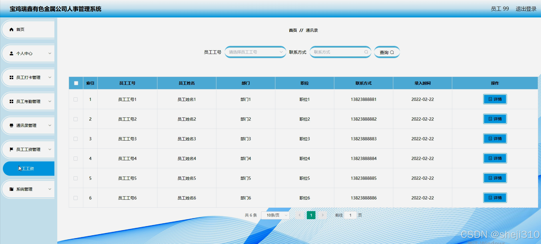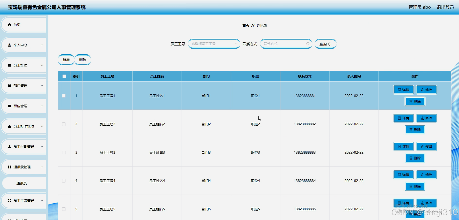 - 通讯录维护:构建企业内部通讯录,支持按部门、职位等条件查询员工联系方式,促进内部沟通与协作。