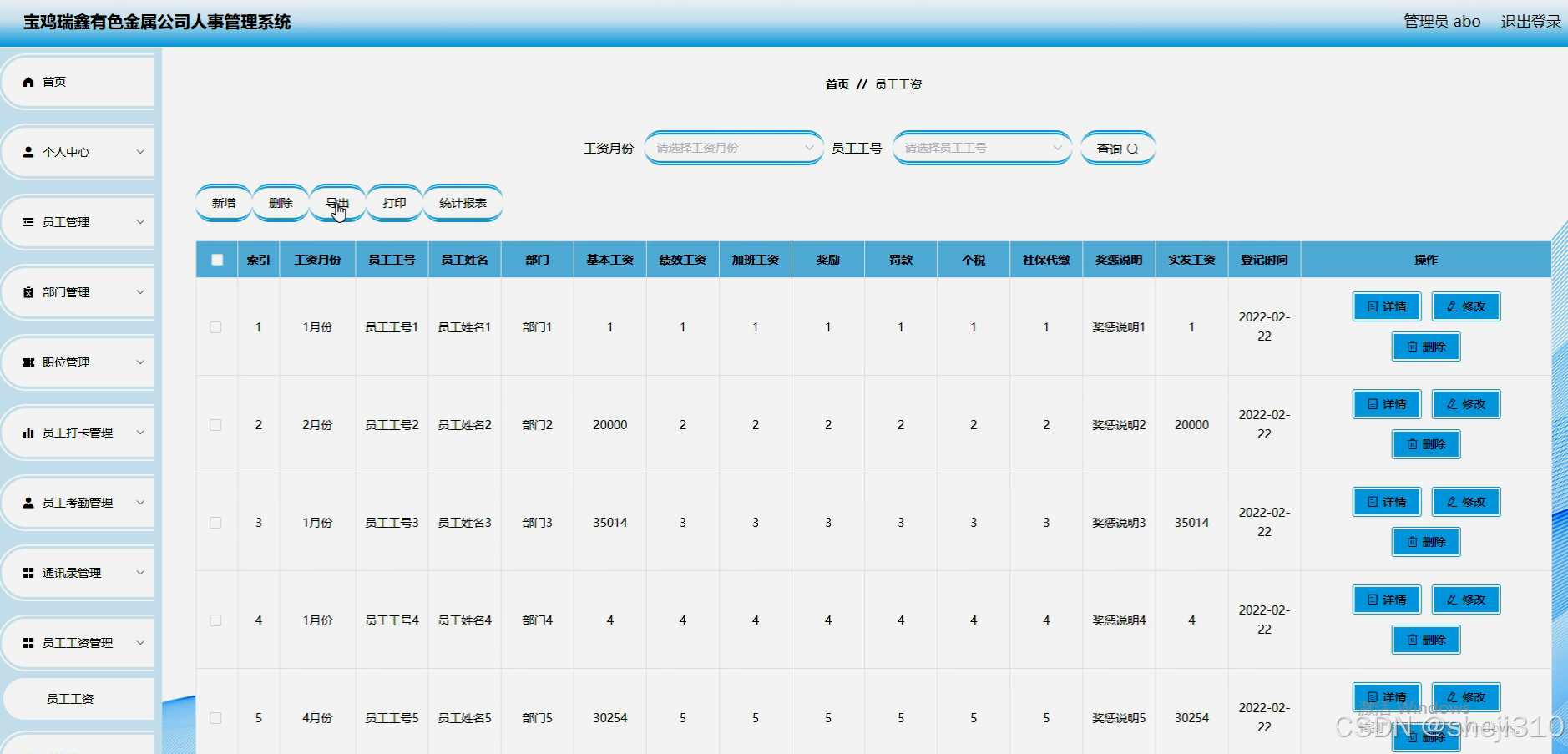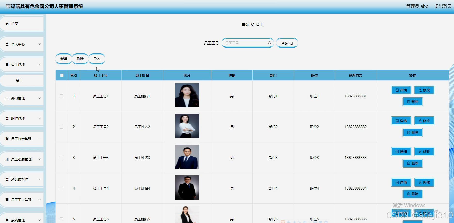 - 员工信息管理:实现对员工基本信息的录入、查询、修改与删除,支持多条件组合查询,确保员工信息的完整性与准确性。