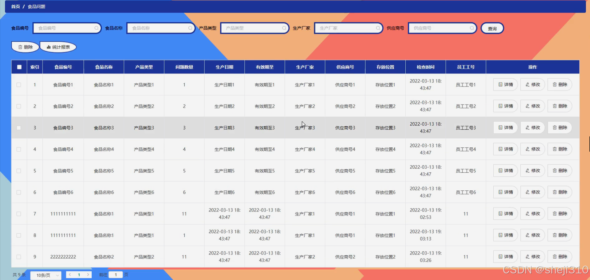 本研究旨在设计并实现一套功能完善的超市食品安全信息管理系统,以实现对超市内食品信息的全面、准确、高效管理。通过该系统,超市能够实现对员工、供应商、产品类型、食品信息等关键要素的数字化管理,优化食品入库、出库、出售等流程,提高食品安全管理的透明度和可追溯性。同时,系统还应具备用户信息管理功能,方便消费者查询食品信息,增强消费者的信任度和满意度。