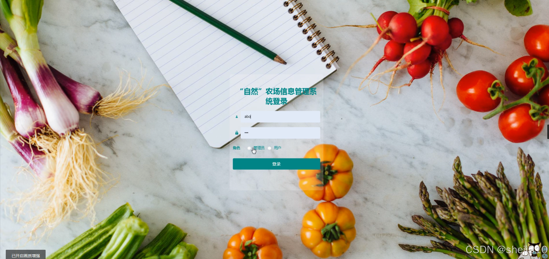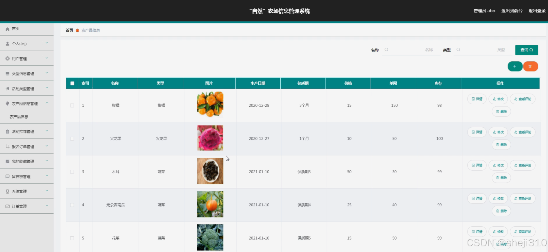 本研究旨在设计并实现一套功能完善的自然农场信息管理系统,通过整合用户管理、农产品信息管理、类型信息管理、活动类型管理、活动推荐及报名订单等核心功能,实现农场运营的全面数字化。该系统旨在提高农场管理效率,优化用户体验,促进自然农场可持续发展,为农业现代化转型提供可借鉴的信息化解决方案。
