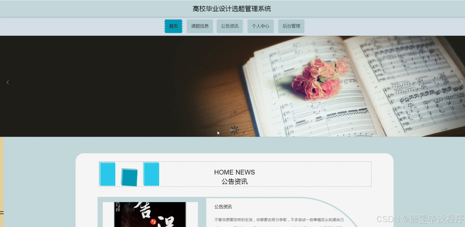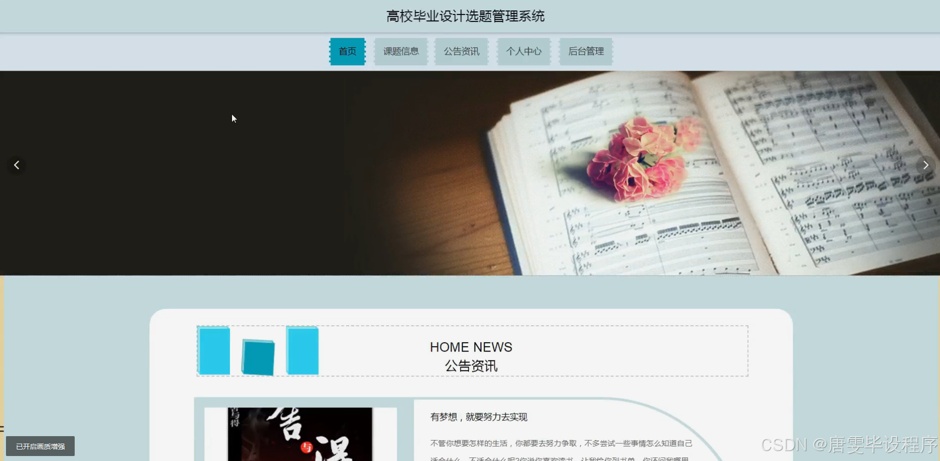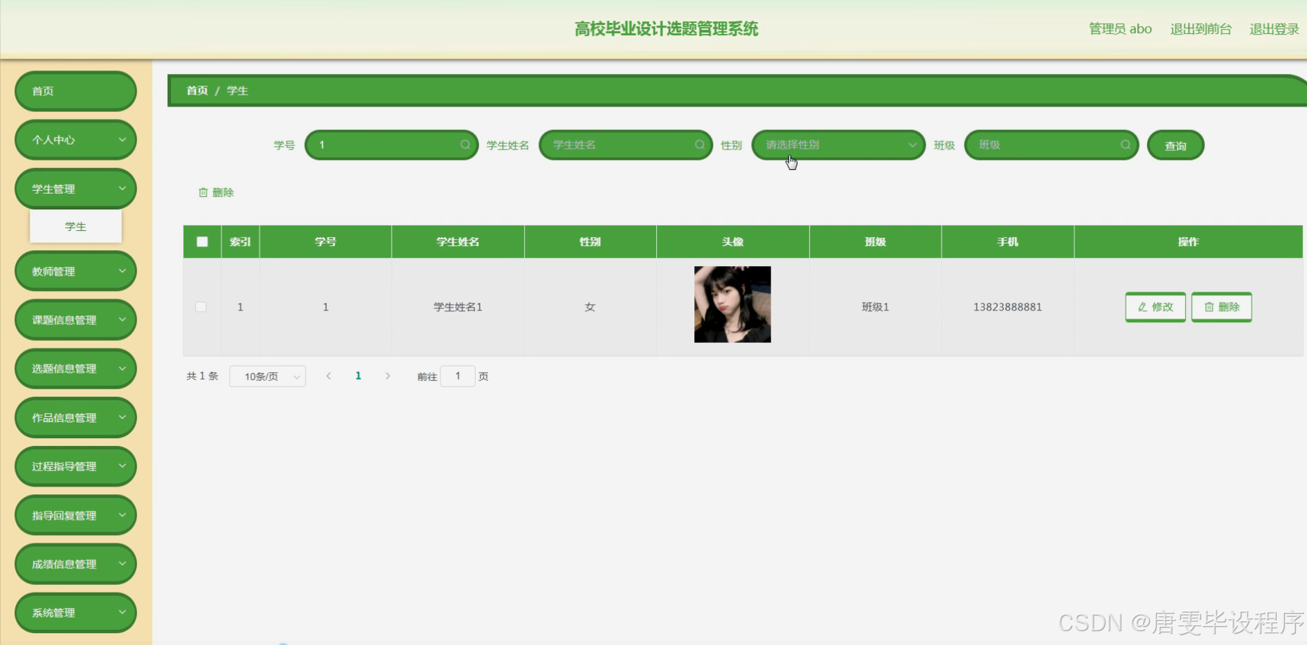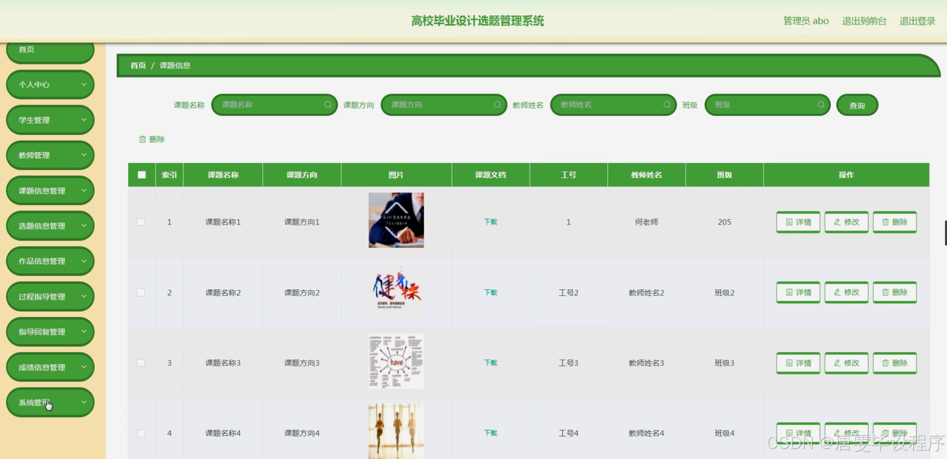 本研究旨在通过开发一套适用于高校毕业设计选题的管理系统,实现选题流程的自动化、信息管理的透明化以及指导过程的互动化。该系统不仅能够减轻教务管理部门的工作负担,提高管理效率,还能为学生提供更加丰富的选题资源,增强选题的针对性和实效性。同时,系统还能促进教师与学生之间的有效沟通,确保指导过程的及时性和有效性,进而提升毕业设计的整体质量和水平。此外,该系统的研发与应用,对于推动高校教育信息化进程,提升教育现代化水平具有重要意义。