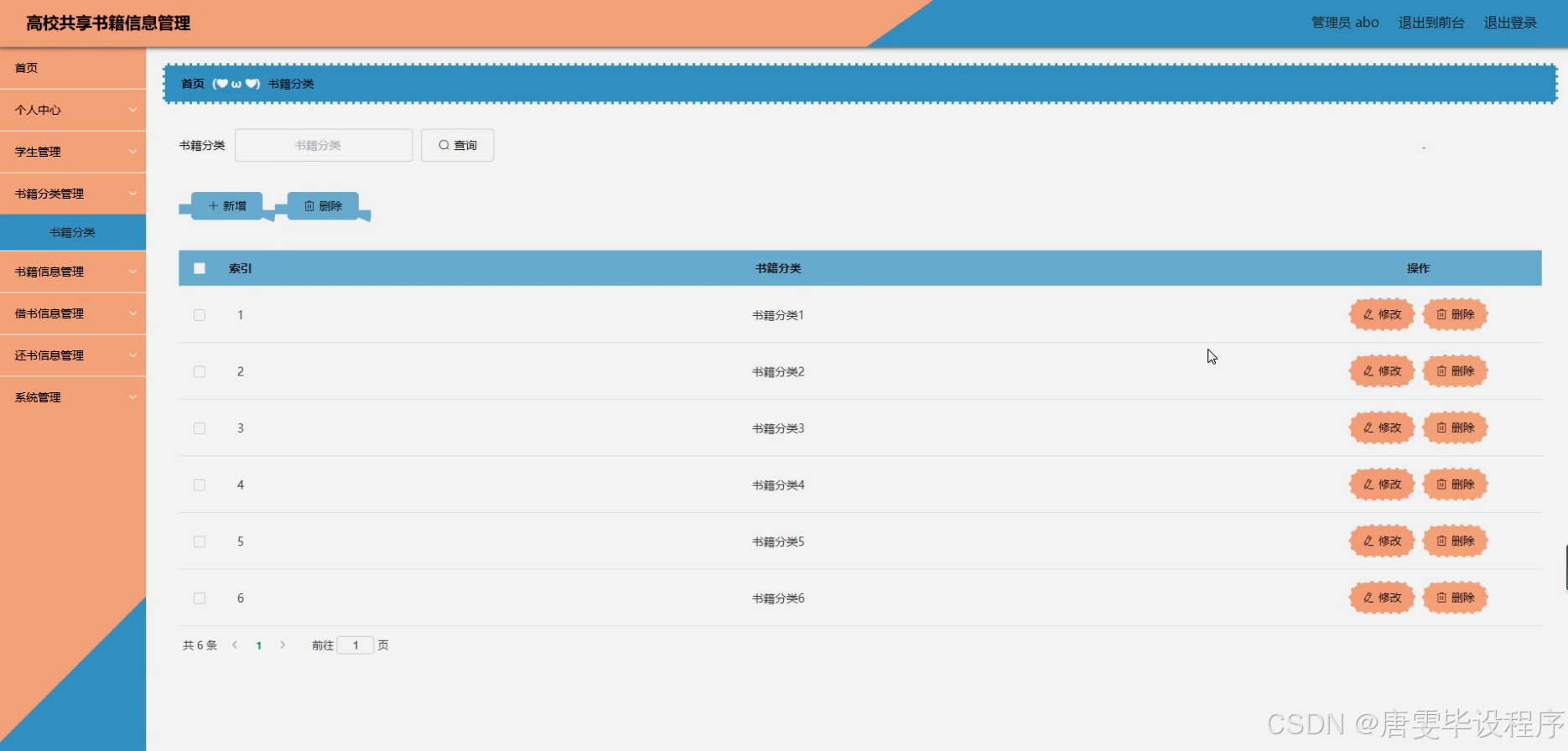 本研究将围绕高校共享书籍信息管理系统的功能需求展开,具体包括学生信息管理、书籍分类管理、书籍信息管理、借书信息管理以及还书信息管理等功能模块。学生信息管理模块将实现学生信息的录入、查询和修改等功能;书籍分类管理模块将实现书籍的分类、标签设置等功能;书籍信息管理模块将实现书籍信息的录入、查询、更新和删除等功能;借书信息管理模块将实现借书申请的提交、审核、确认以及借书记录的查询等功能;还书信息管理模块将实现还书申请的提交、审核、确认以及还书记录的查询等功能。通过这些功能模块的实现,构建一个完整、高效的高校共享书籍信息管理系统。