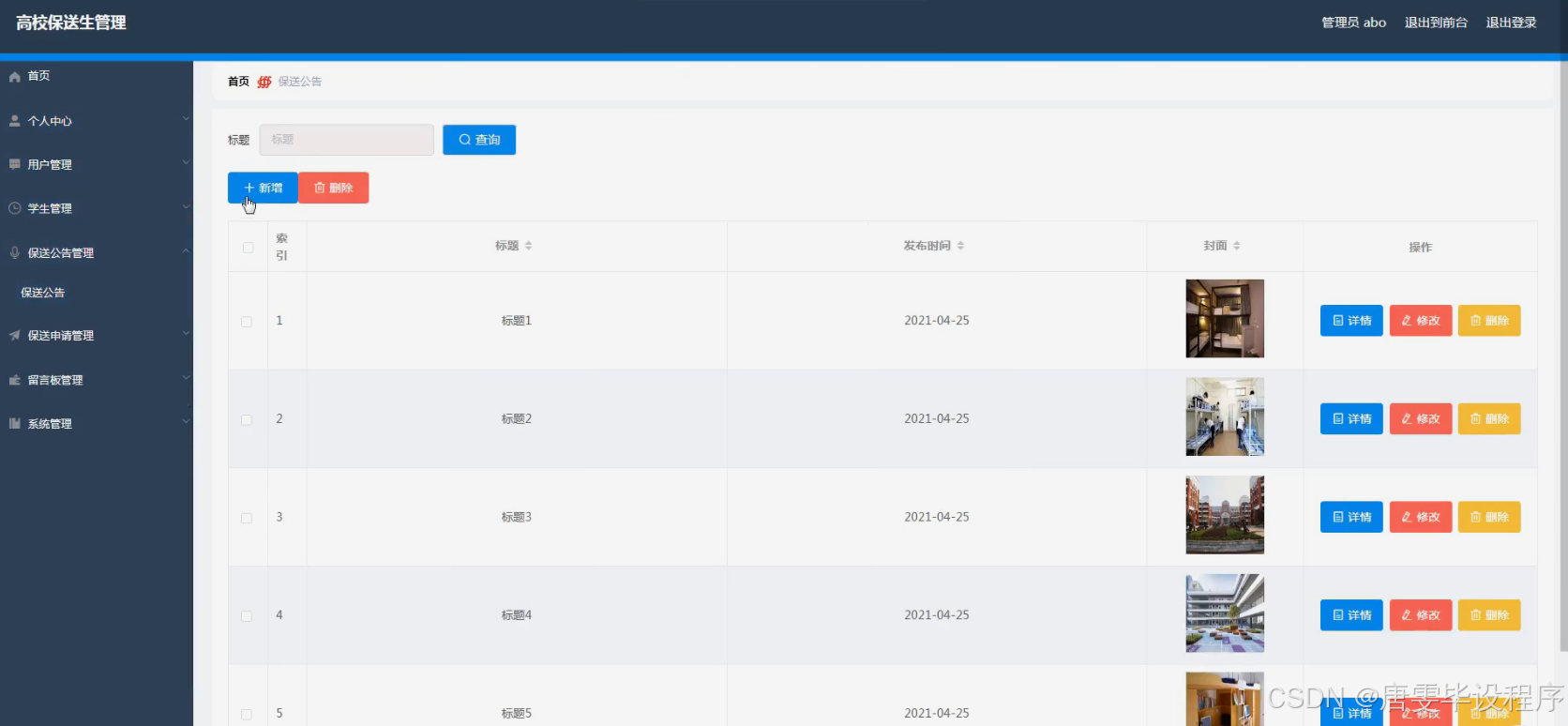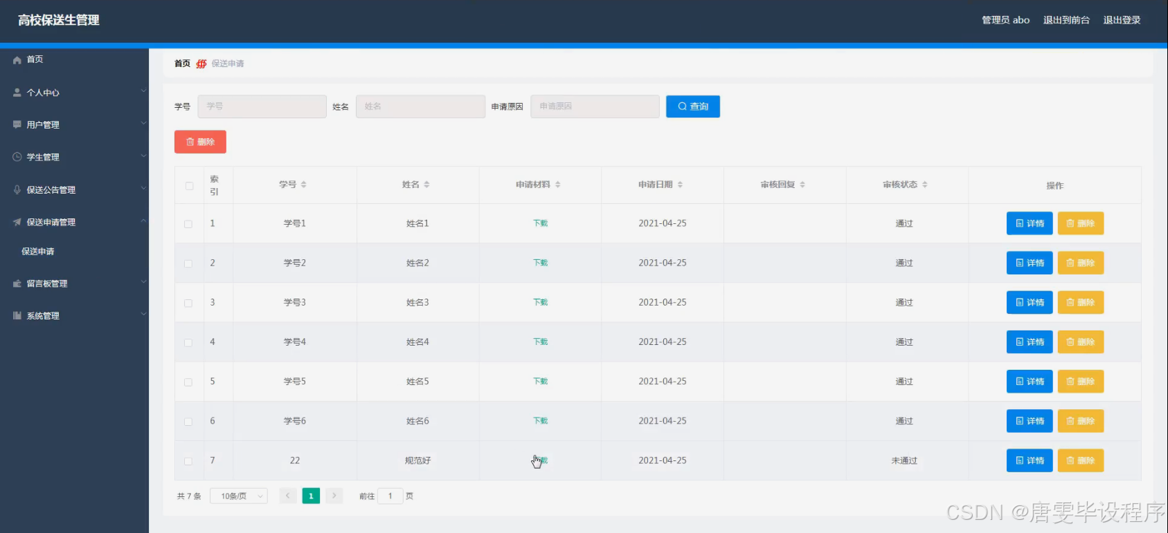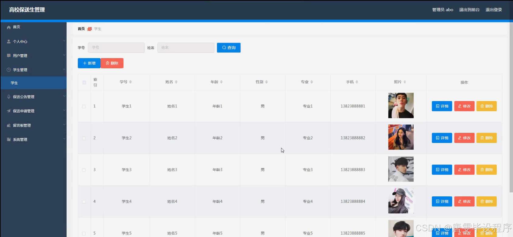 本研究的主要目的是设计并实现一套功能完善、操作便捷的高校保送生管理系统。该系统应具备用户管理、学生信息管理、保送公告发布、保送申请提交与审核等核心功能,以满足高校保送生选拔与管理的实际需求。通过该系统的实施,旨在实现保送生选拔流程的自动化、信息化,提高选拔效率,确保选拔过程的公平性和透明度,为高校保送生制度的健康发展提供有力保障。