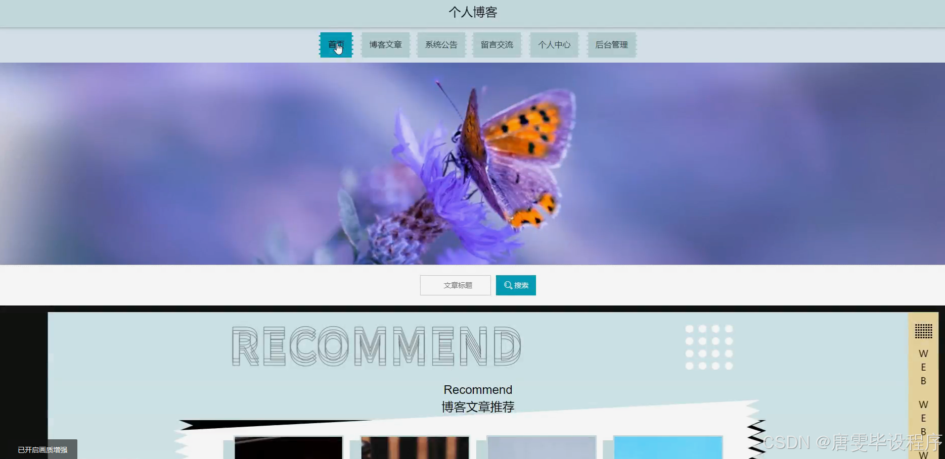 本研究旨在通过开发一个功能完善的个人博客系统,为用户提供一个自由、开放的网络空间,使其能够便捷地发布文章、管理内容,并与读者进行互动交流。该系统不仅有助于提升用户的网络素养和表达能力,还能促进知识的传播与共享,推动网络文化的繁荣发展。此外,通过本研究,还能够进一步探索个人博客系统的发展趋势,为相关领域的研究提供有益的参考和借鉴。