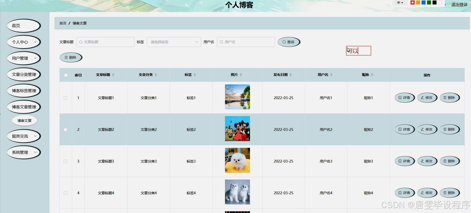 (4)2024年3月25日至2024年4月5日:完善各功能模板的基本功能;