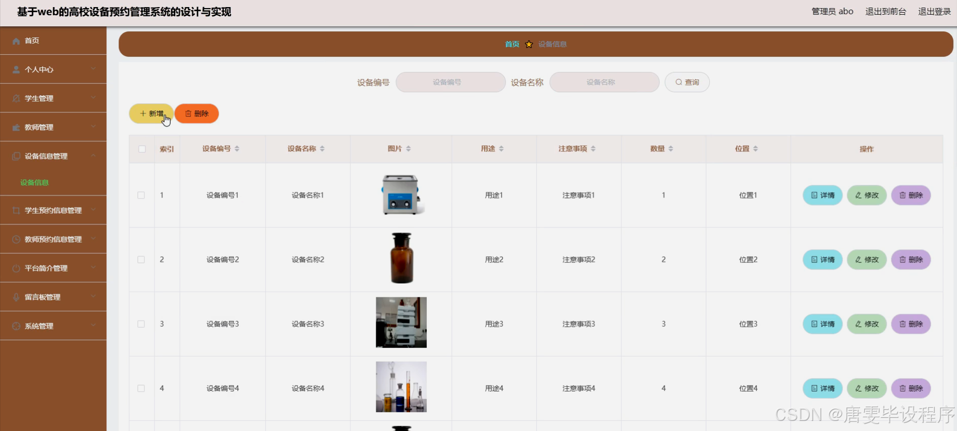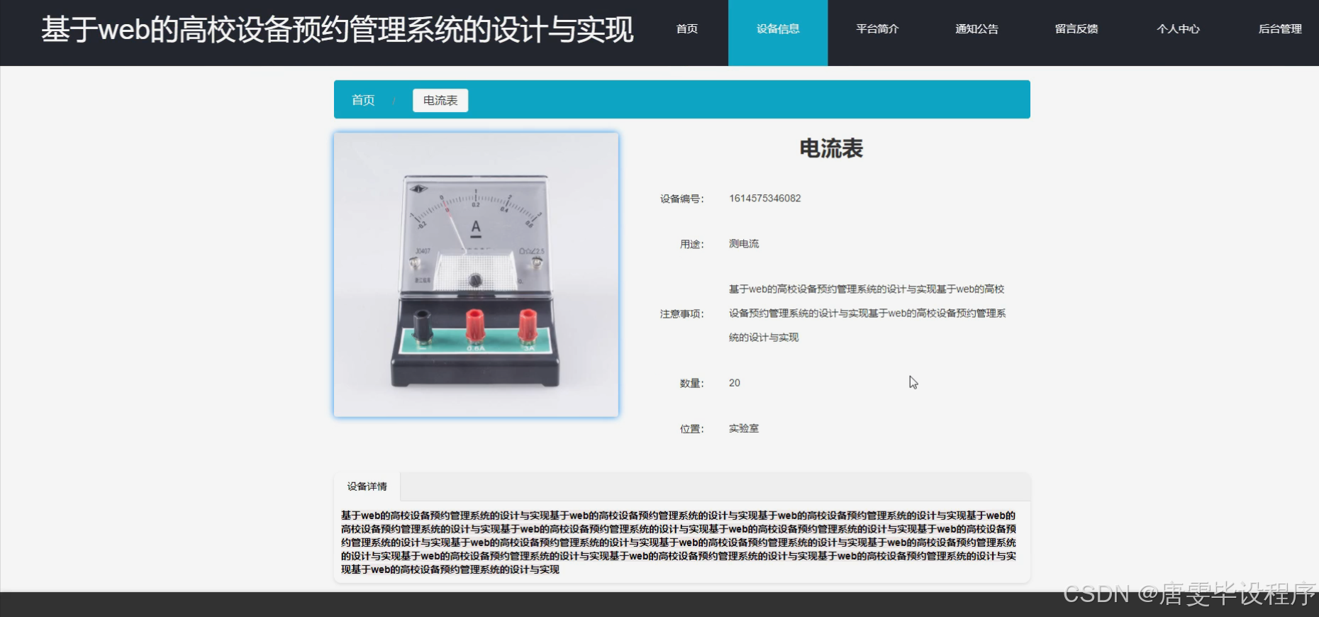 随着高校教育资源的日益丰富和多样化,各类教学、科研设备的需求量与日俱增。传统的人工管理方式不仅效率低下,还容易出错,难以满足当前高校设备管理的实际需求。特别是在设备预约方面,学生与教师常常面临预约流程繁琐、信息不对称等问题,严重影响了教学和科研工作的顺利进行。因此,开发一套高效、便捷的高校设备预约管理系统显得尤为重要。该系统旨在通过信息化手段,实现设备预约的自动化、智能化管理,提高设备使用效率,优化资源配置。