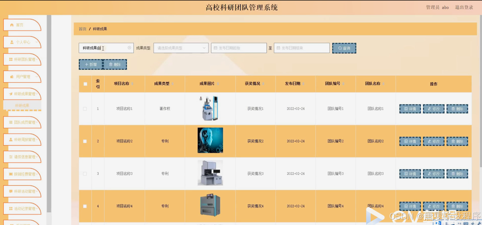 高校科研团队管理系统:开发出一个功能完善、易于使用的高校科研团队管理系统,满足科研团队在日常管理中的各种需求。