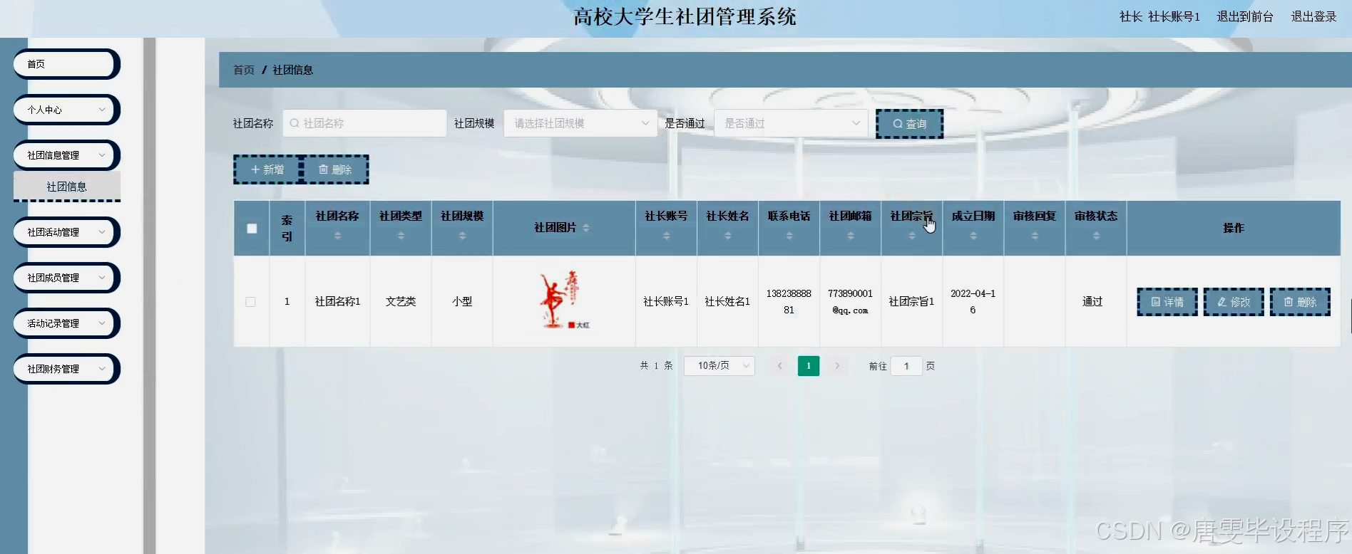 本研究预期将取得以下成果:一是设计并实现一套功能完善、操作简便的高校大学生社团管理系统;二是通过系统的应用,提高高校社团管理的效率和水平;三是为高校社团的健康发展提供有力支持,推动高校社团管理的现代化进程;四是形成一套可复制、可推广的高校社团管理模式和经验,为其他高校提供借鉴和参考。