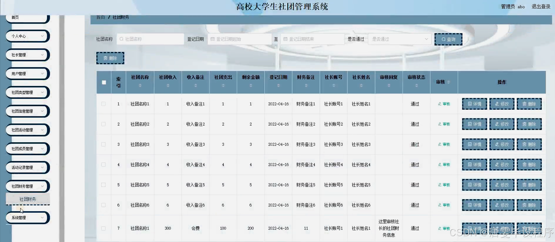 本研究的主要目的是设计并实现一套功能完善、操作简便的高校大学生社团管理系统。该系统应具备社长管理、用户信息管理、社团类型划分、社团信息展示、社团活动安排、社团成员管理、活动记录查询以及社团财务管理等功能,以满足高校社团管理的多元化需求。通过该系统的应用,旨在提高社团管理的效率和水平,促进社团活动的有序开展,为高校社团的健康发展提供有力保障。